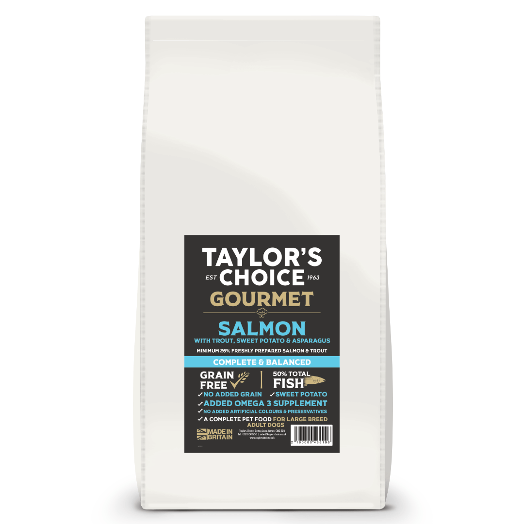 Price range: £15.99 through £67.99 This product has multiple variants. The options may be chosen on the product pageDogDog Food DryTaylors Choice Dog Gourmet Large Breed Salmon, Trout & Sweet Potato